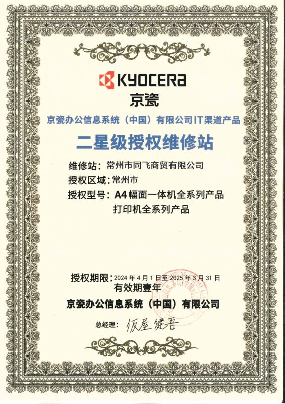 京瓷同飛維修站授權(quán)2024